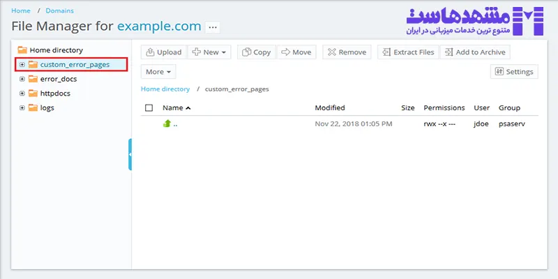 رفته و سپس یک دایرکتوری جدید برای صفحات خطای سفارشی در پلسک ایجاد کنید (به عنوان مثال، صفحه خطای custom_error_pages)