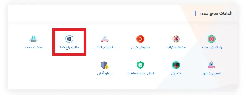 شما می توانید حالت Rescue را از همان بخشی که آن را فعال کرده اید، مجددا غیرفعال کنید. برای این کار از بخش اقدامات سریع سرور، گزینه حالت رفع خطا را انتخاب کنید و سپس در کادری که از شما بابت غیرفعال سازی حالت نجات سوال می کند، گزینه تایید را انتخاب کنید.