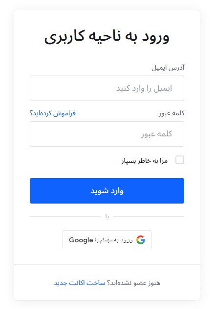 - اطلاعات ورود به ناحیه کاربری مشهدهاست