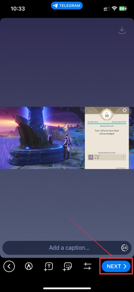 3. عکس یا ویدیویی که میخواهید استوری کنید را از گالری گوشی انتخاب کنید؛ سپس گزینه Next را بزنید.