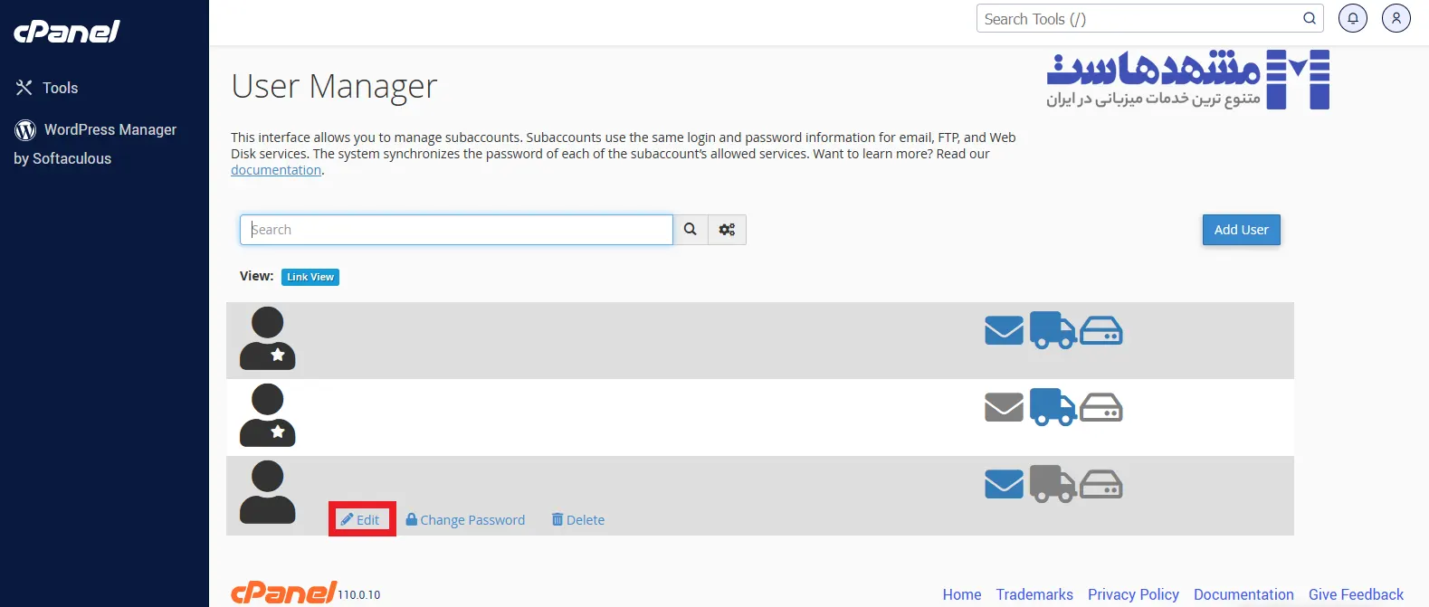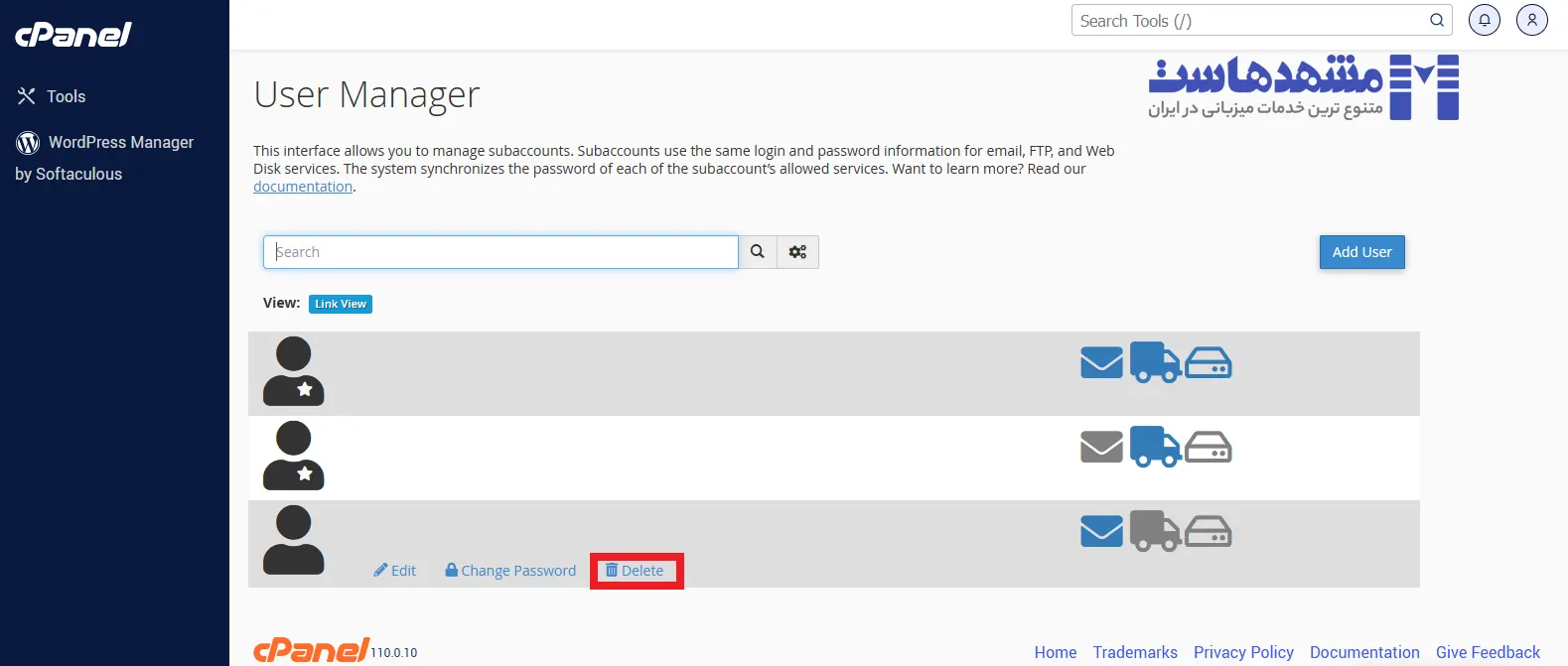 در این مقاله نحوه مدیریت کاربران در سی پنل آموزش داده شد. بخش User Manager در سی پنل تمام حساب های کاربری که دارای اکانت ایمیل یا اکانت FTP مرتبط با دامنه سایت هستند را به شما نشان می دهد. در این بخش میتوانید اکانت جدیدی اضافه کنید، رمز عبور اکانت ها را تغییر دهید و یا آنها را از همین بخش حذف کنید و به طور کلی نسبت به مدیریت کاربران در سی پنل اقدام نمایید.