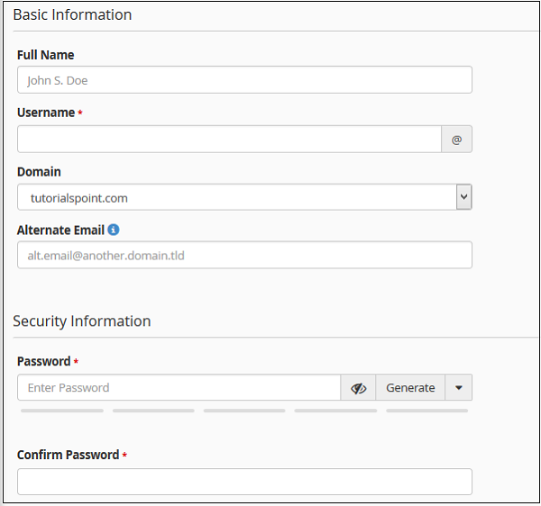 4) حال در بخش Basic Information، تمام اطلاعات لازم مانند نام کاربری و رمز عبور را وارد کنید. می توانید نام کامل کاربر را ارائه دهید، اما اختیاری است.