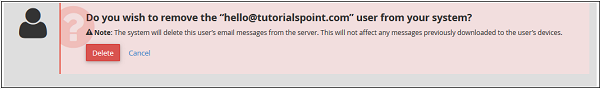 3) یک هشدار قرمز رنگ نمایش داده می شود و از شما تایید حذف کاربر درخواست می شود، روی دکمه حذف کلیک کنید تا حساب کاربری حذف شود.